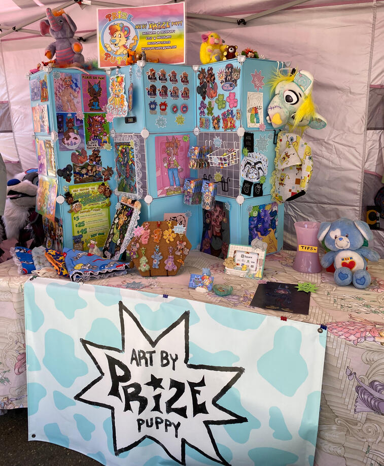 My products aren't necessarily all too different from that of other artists and vendors, this is true. What sets me apart from other artists is the experience of shopping at my booth. Here, the niche and sometimes forgotten pieces of the past are not only embraced but also celebrated. Here, you will find not only nods and homages to impressive media of the past but also an emerging franchise of my own creation to familiarize yourself with, "Surpriseville"!I offer keychains, buttons, stickers, prints, custom badges, one of a kind paintings, bandanas, fiber arts, and vintage toys and tchotchkes. If requested, I am happy to discuss what offerings would work best for your event.My small business is currently under construction. Please keep this in mind as I curate my shoppers experience to more closely align with my vision as an artist.